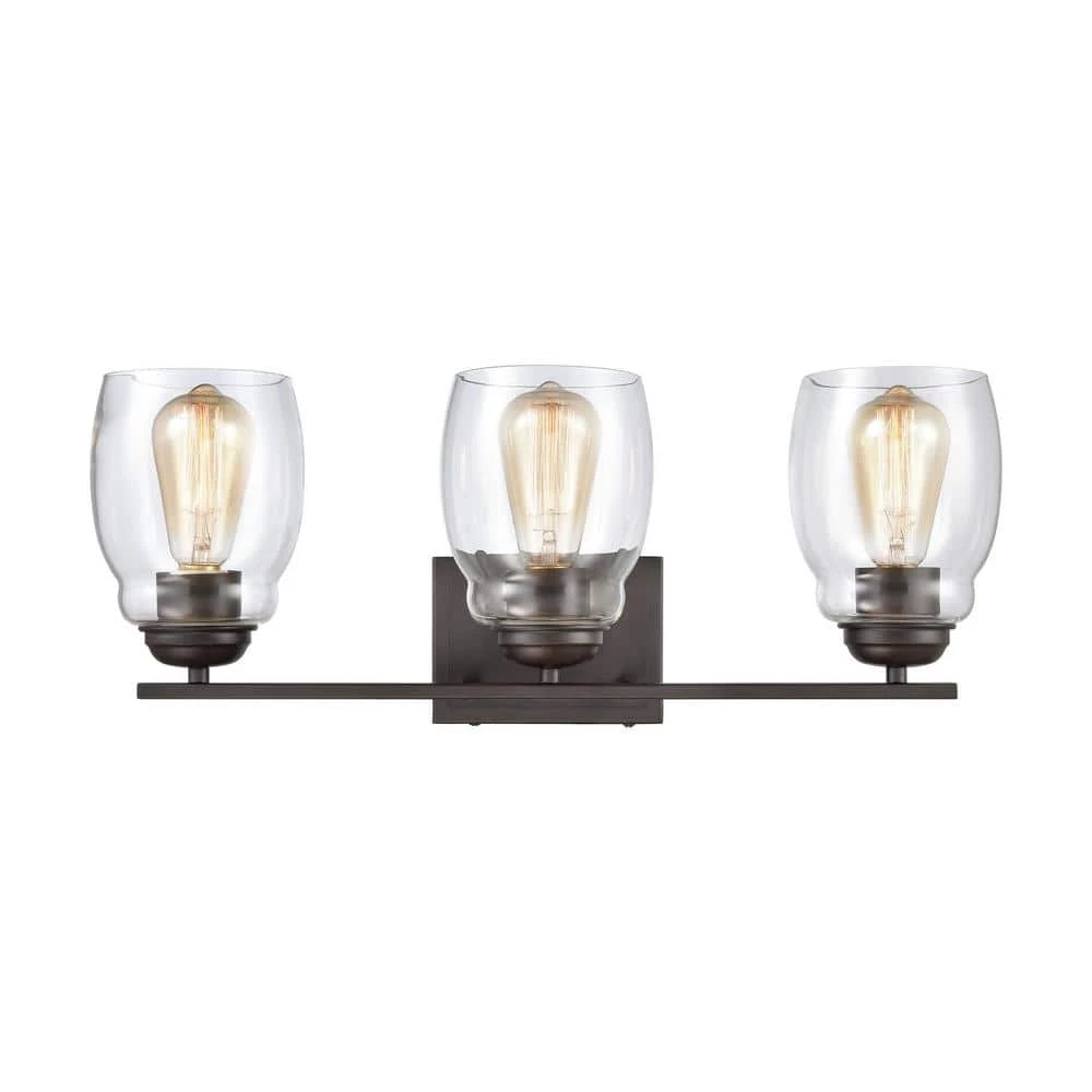 The Calistoga 3 Light Vanity is perfect for illuminating a bathroom mirror. Transitional in style, it makes a versatile match for a range of bathroom interiors. Its 3 bulbs are held upright within individual, clear glass shades, while its metal appointments come in a rich, oil rubbed bronze finish.