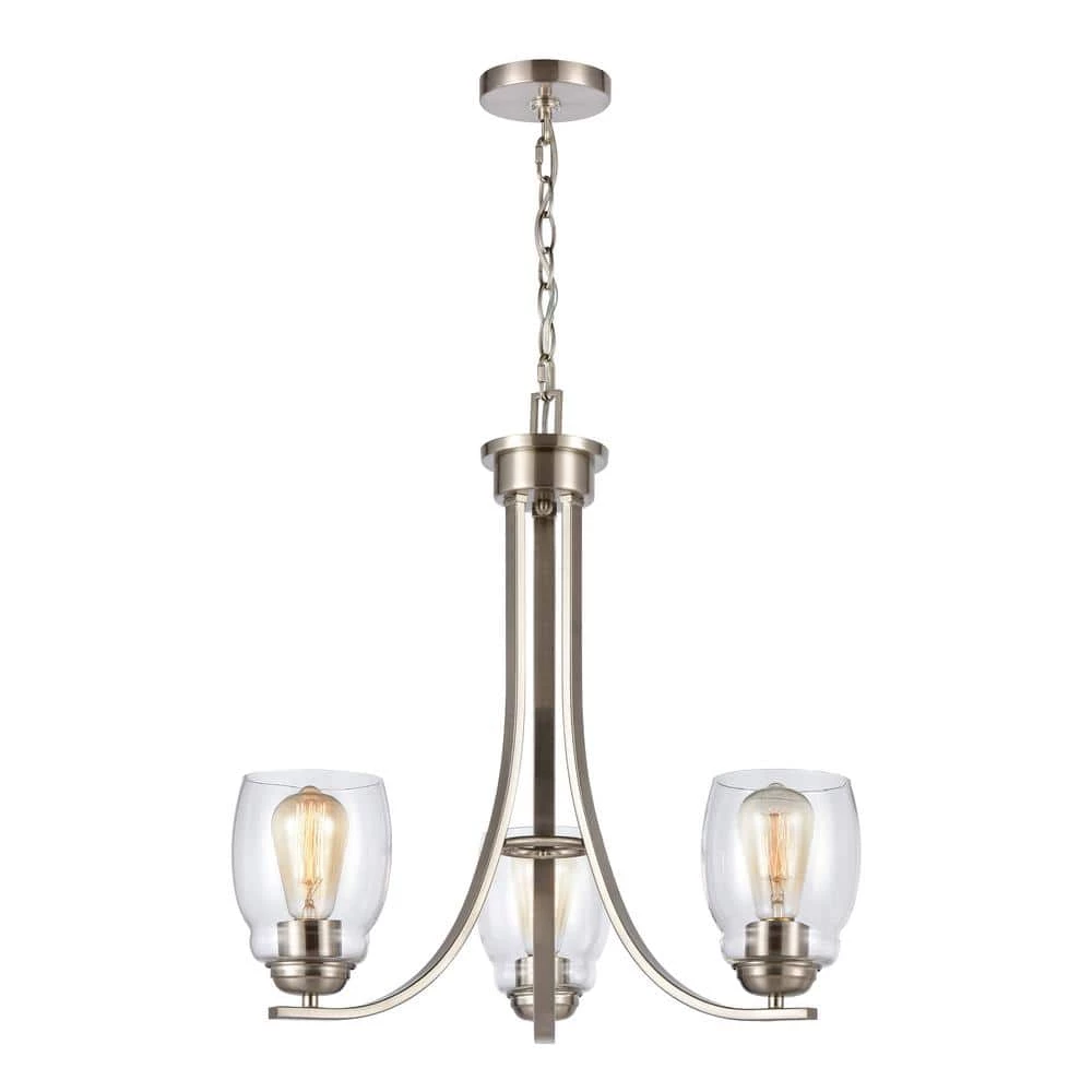 The Calistoga 3-Light Chandelier is perfect for creating a focal point within a transitional style living room, dining room or hallway. Made from metal in a brushed nickel finish, its curving arms hold 3 bulbs with individual, clear glass shades. The height of this piece is adjustable, making it easy to tailor fit to its location.