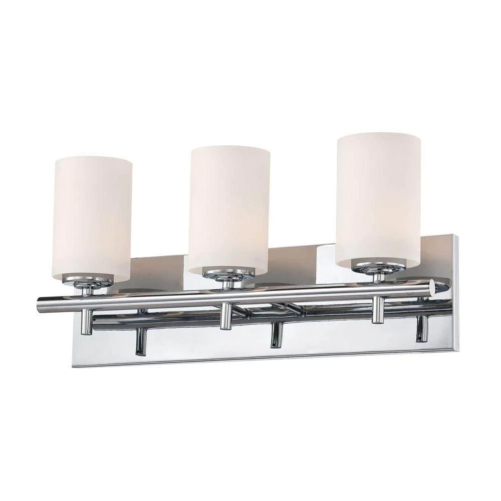 White opal glass shades atop the ultimate bath bar. Available in single, double, triple, and quad combinations. Indoor use only.