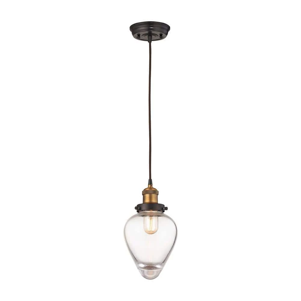 The Bartram mini pendant has heavy clear optic glass with a cast socket cover and an Oil Rubbed Bronze-Antique Brass finish. . Add flair and visual intrigue to any design space. Our stylish mini pendants are offered in a variety of finishes, glass colors and in a variation of configurations to fit any design needs. Due to the hand-made nature of many of our glass pendants, each piece will vary slightly in color and pattern.