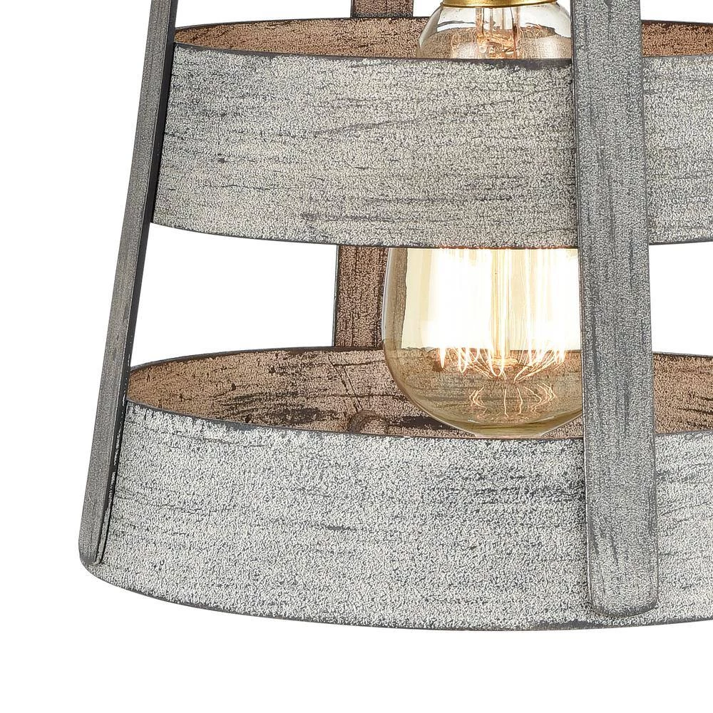 - Weathered driftwood and satin nickel finish