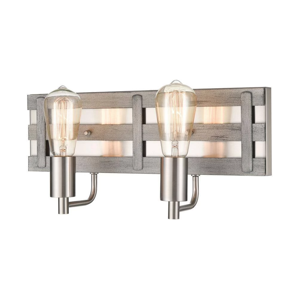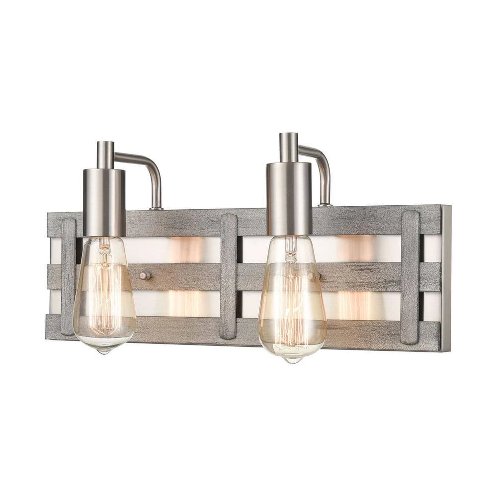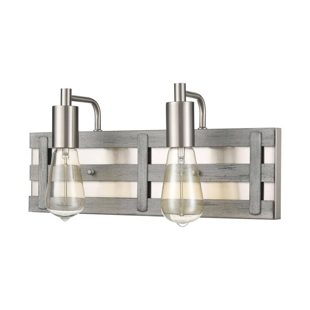 The Brigantine 2-light vanity exudes a fresh, open and airy design with metal “slats” finished in Weathered Driftwood. Satin Nickel finished hardware adds a contrasting backdrop and warm reflections of light. A great addition to any room. Can be used with LED bulbs.