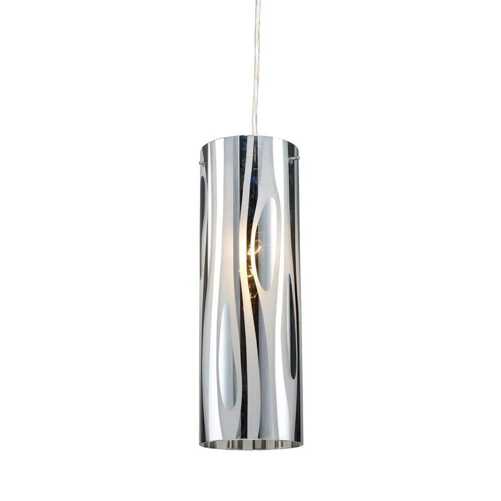 Pendant lighting with a designer flare. Polished chrome finish with designs masked on the glass. Comes with 6 ft. of clear cord.