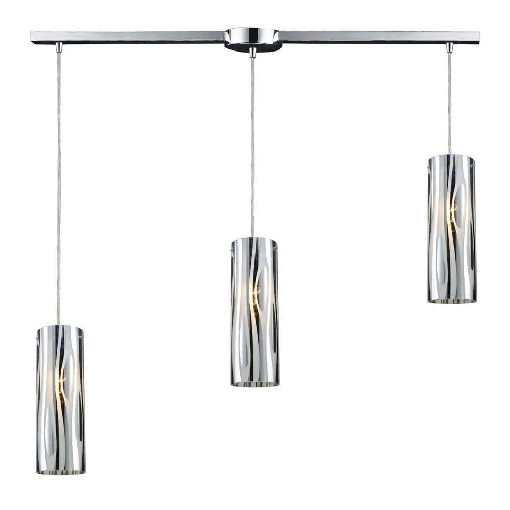 Pendant lighting with a designer flare. Polished chrome finish with designs masked on the glass. Comes with 6 ft. of clear cord.