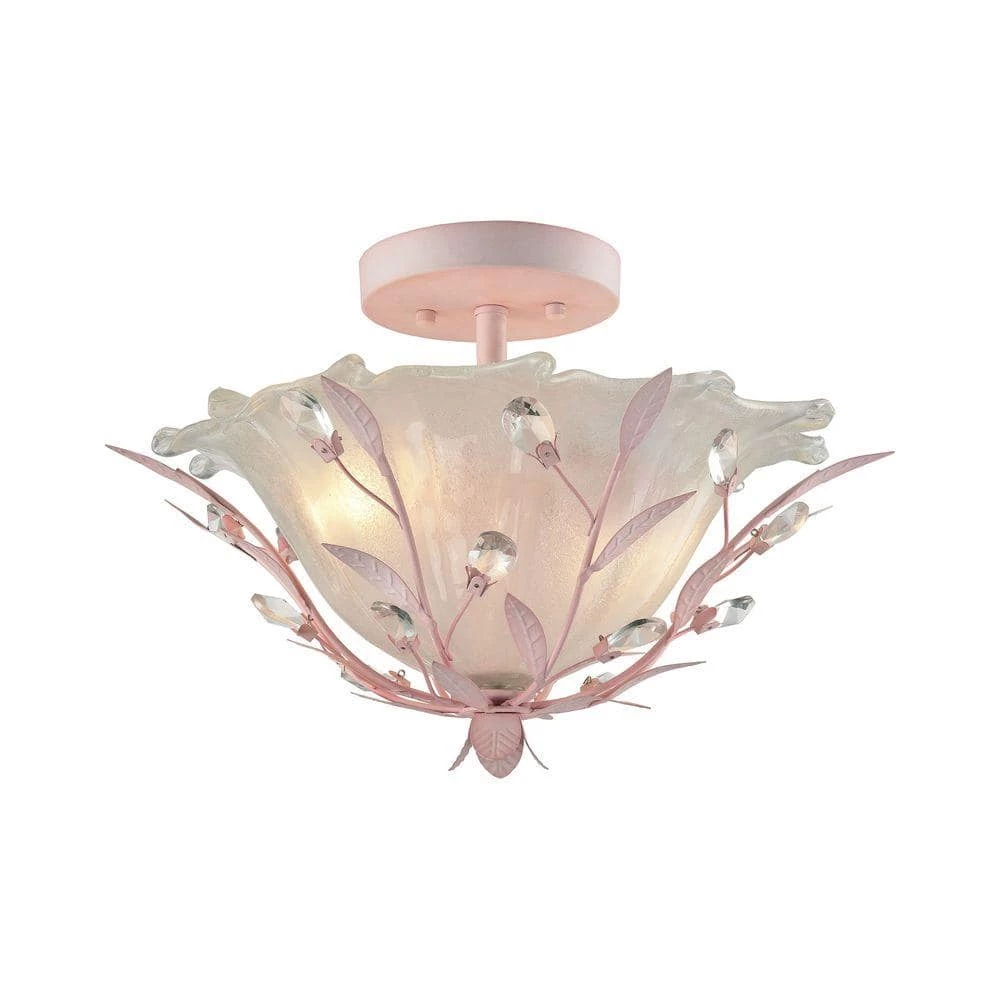 The magnetic influences of this Circeo Collection is the intertwined branches accented by delicately cradled crystals that resemble frozen water droplets. Frosted white glass rested on top of pink vine branches. Product for indoor use.