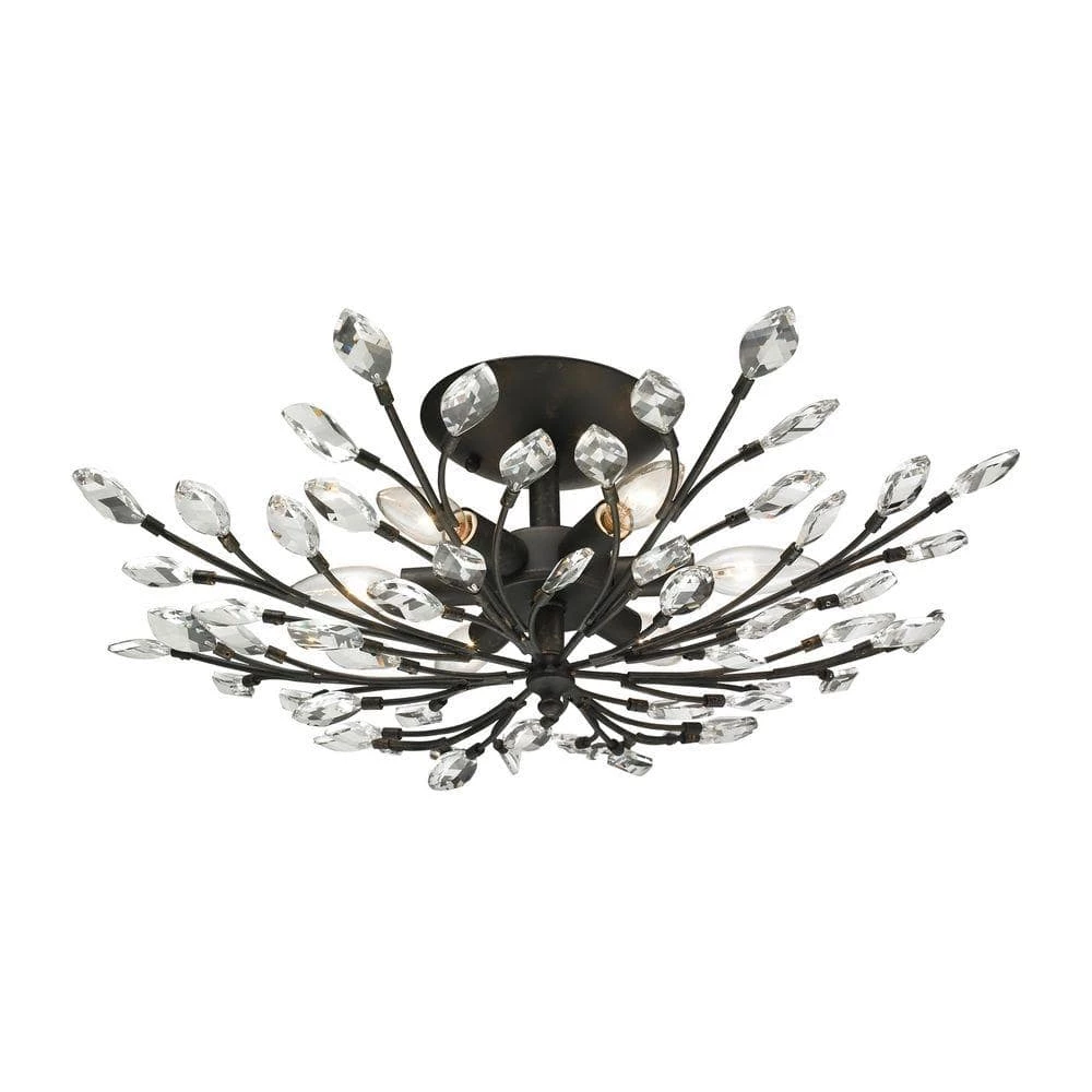 This collection blends organic forms and textures with a neutral finish for versatility in a wide range of room settings. An abundance of large crystal leaves are enhanced by the nature inspired branches that are finished in Burnt Bronze. Gorgeous Classic Design.