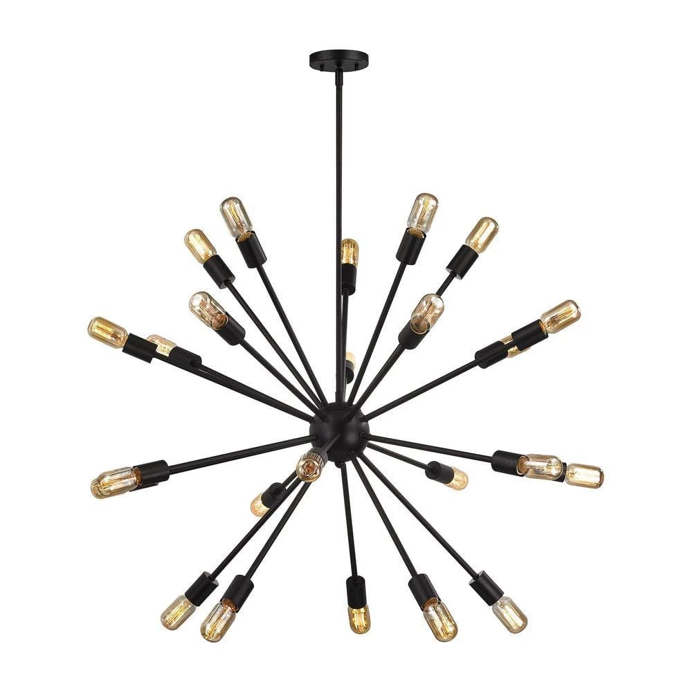 Delphine 24 Light Chandelier In Oil Rubbed Bronze. This collection displays an explosion of light from a center core with optional vintage bulbs. Thin arms on a starburst frame make this a perfect selection for any room.