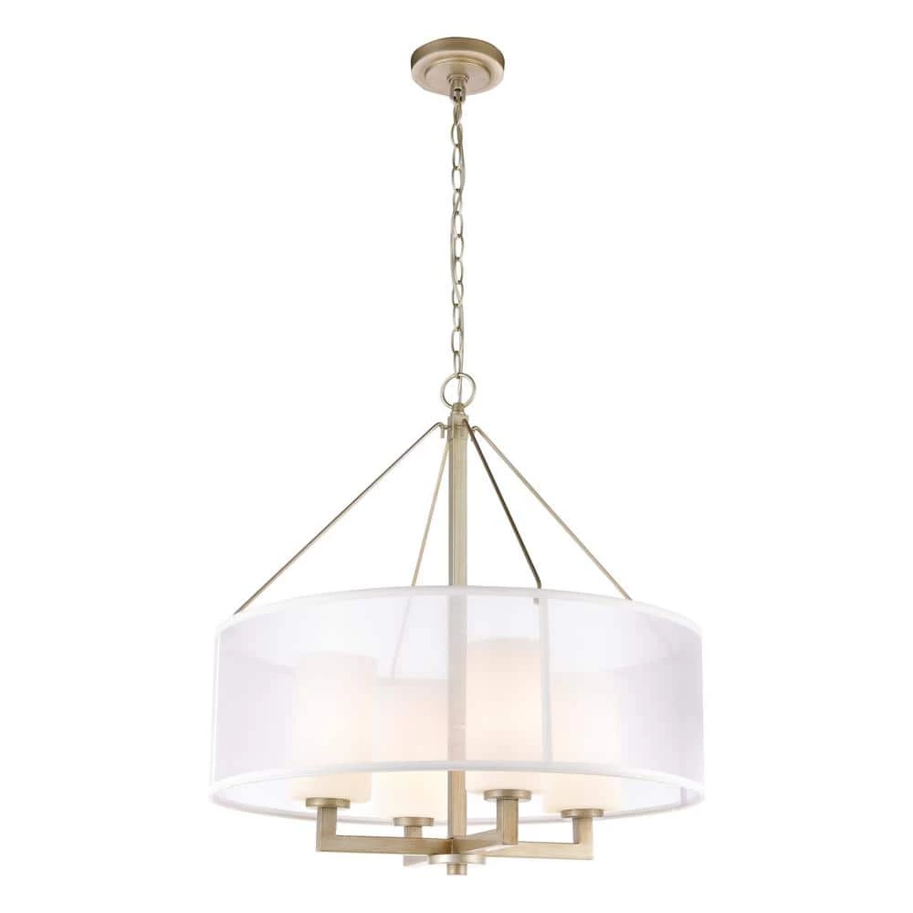 The centerpiece of this pendant is the smooth look of the frosted glass that is modernized through a softly diffusing silver organza drum shade. The clean and simplistic Aged Silver finished metalwork supplies a complementing tone to the shade. A great addition to any room.