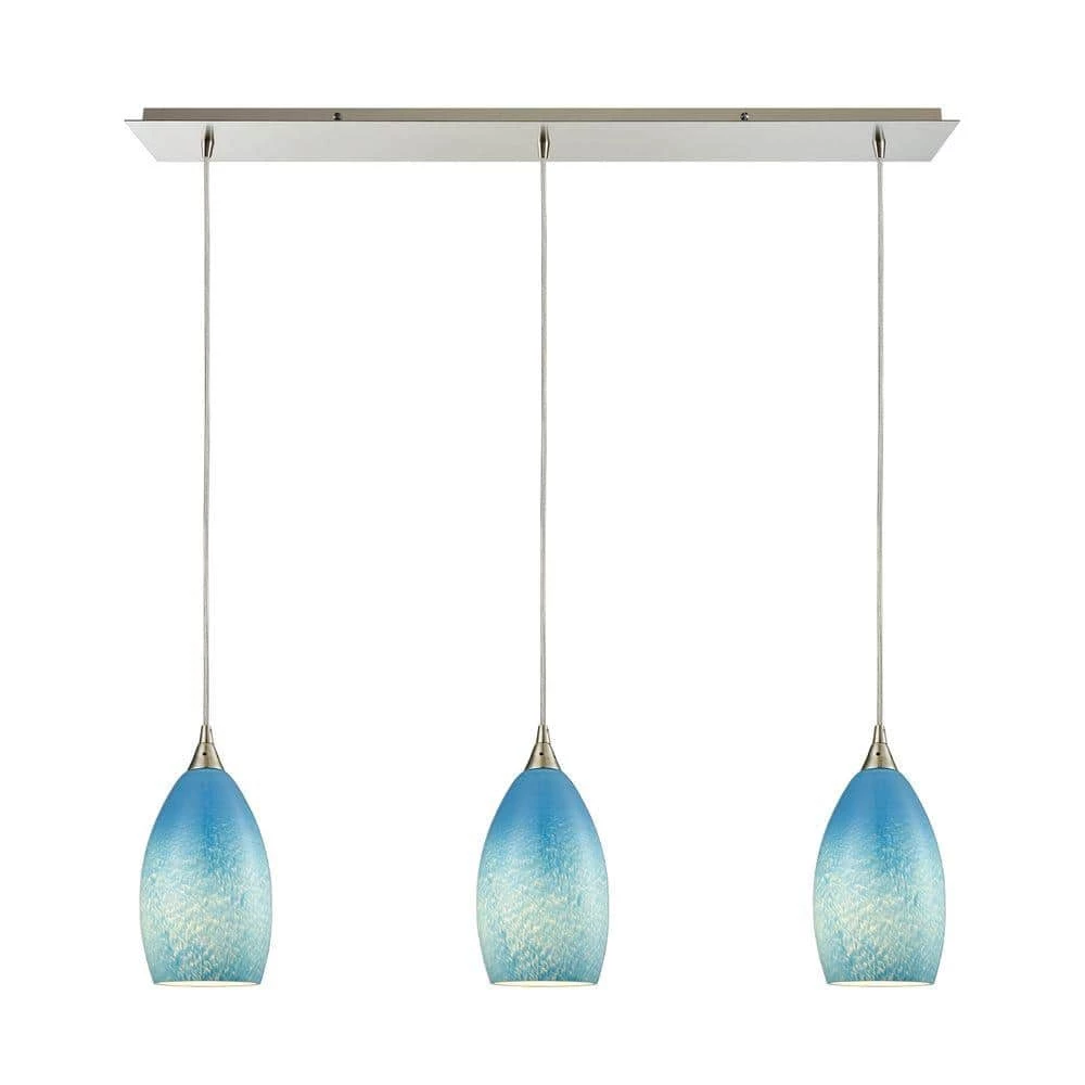 Wispy cloud sky pendant with satin nickel finished hardware. Add flair and visual intrigue to any design space. Our stylish mini pendants are offered in a variety of finishes, glass colors and in a variation of configurations to fit any design needs. Due to the hand-made nature of many of our glass pendants, each piece will vary slightly in color and pattern.