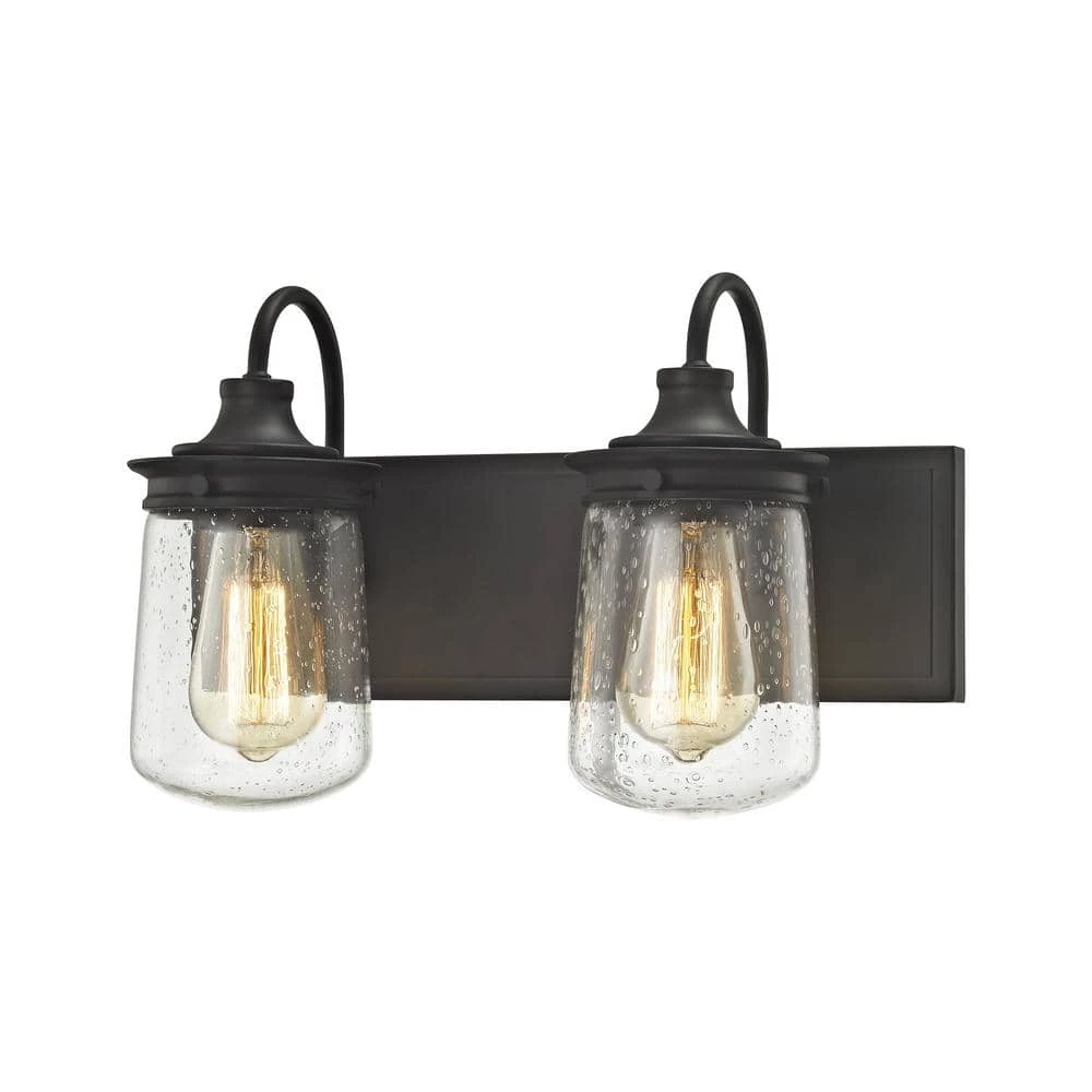The Hamel collection gives a nod to the charmIng Mission designs of the past, with a low profile cap and a gently tapered seedy glass shade. FInished in oil rubbed bronze. Titan LightIng’s bath lights offer various fInish and glass options to mix and match to update your home. All bath lights are rated for Indoor locations. bath lights are shipped with Installation hardware.