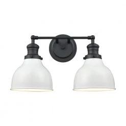 The Holgate 2-light vanity brings a clean, fresh look to modern farmhouse styling. The metal shades have a smoothly curved shape clasped held by crisp spun hardware. Finished in Charcoal with Enamel White metal shades.