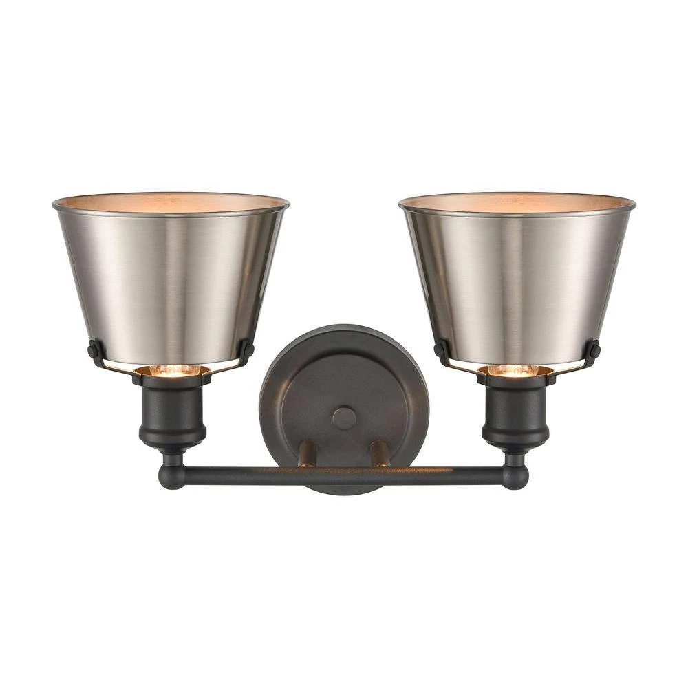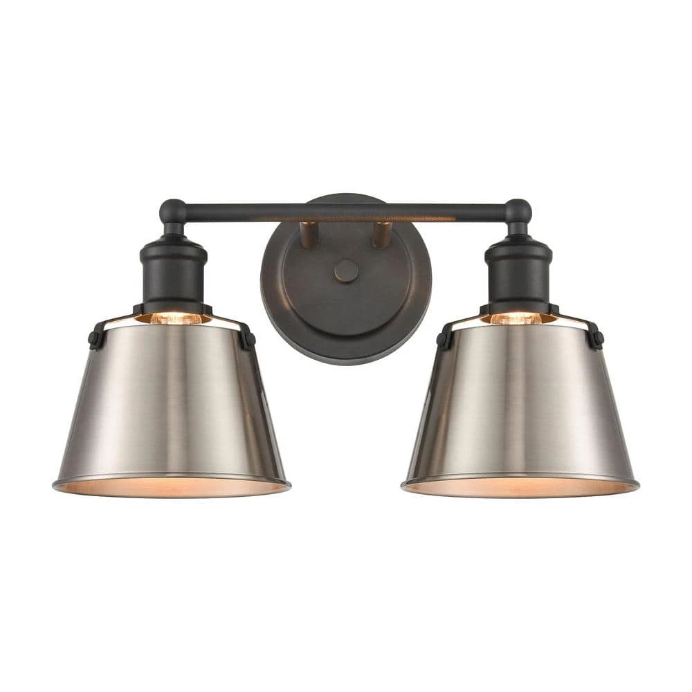 The Holgate 2-light vanity brings a clean, fresh look to modern farmhouse styling. The metal shades have a simple, tapered shape clasped by unique metal hardware. Finished in Charcoal with Satin Nickel metal shades.