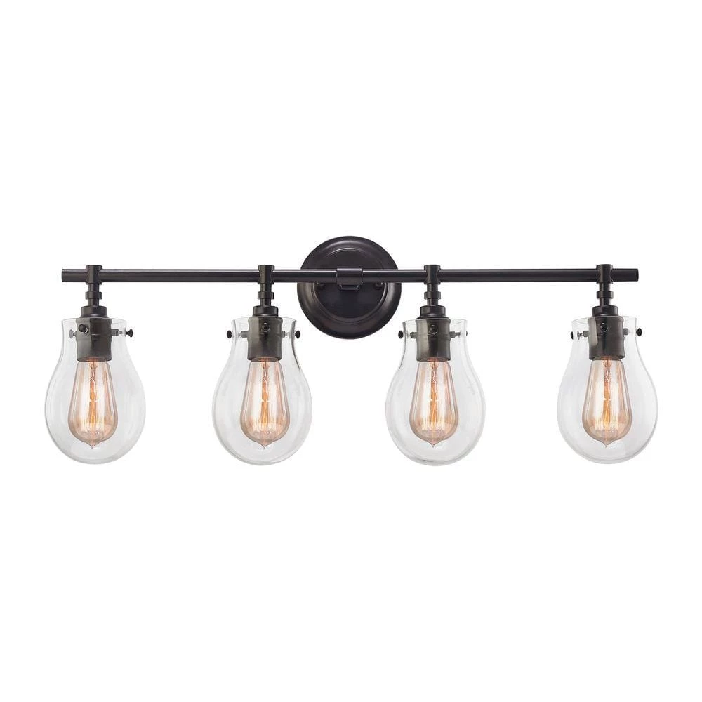 The Jaelyn Collection Vanity features sparkling clear, softly contoured teardrop glass silhouettes accentuated by distinctive, subtly industrial Oil Rubbed Bronze hardware. Enhance the look with our vintage-evocative Edison style bulbs. Indoor use only.