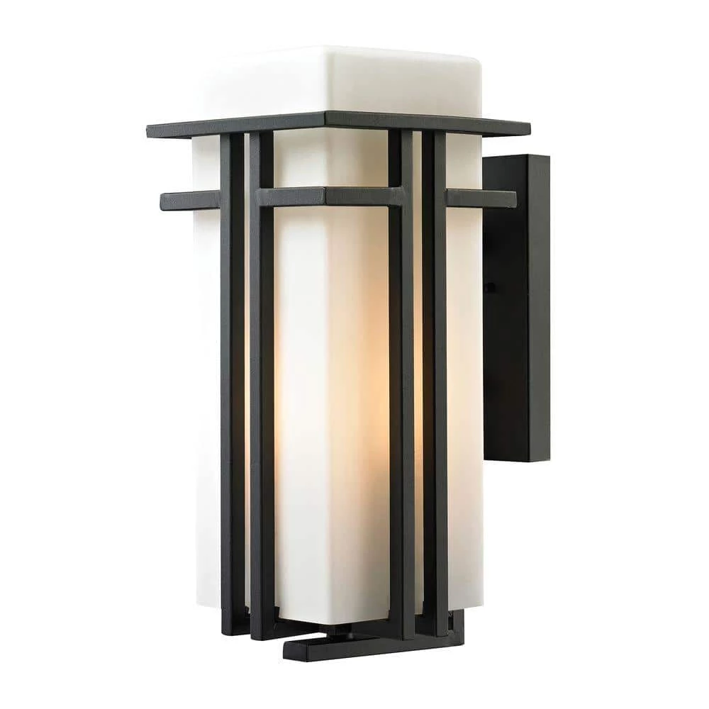 The Kelmscott series has bold, yet clean styling. The Opal White Blown Glass shade emits a soft, beautiful glow. Modern Craftsman lines and a Textured Matte Black finish make an elegant yet solid statement.