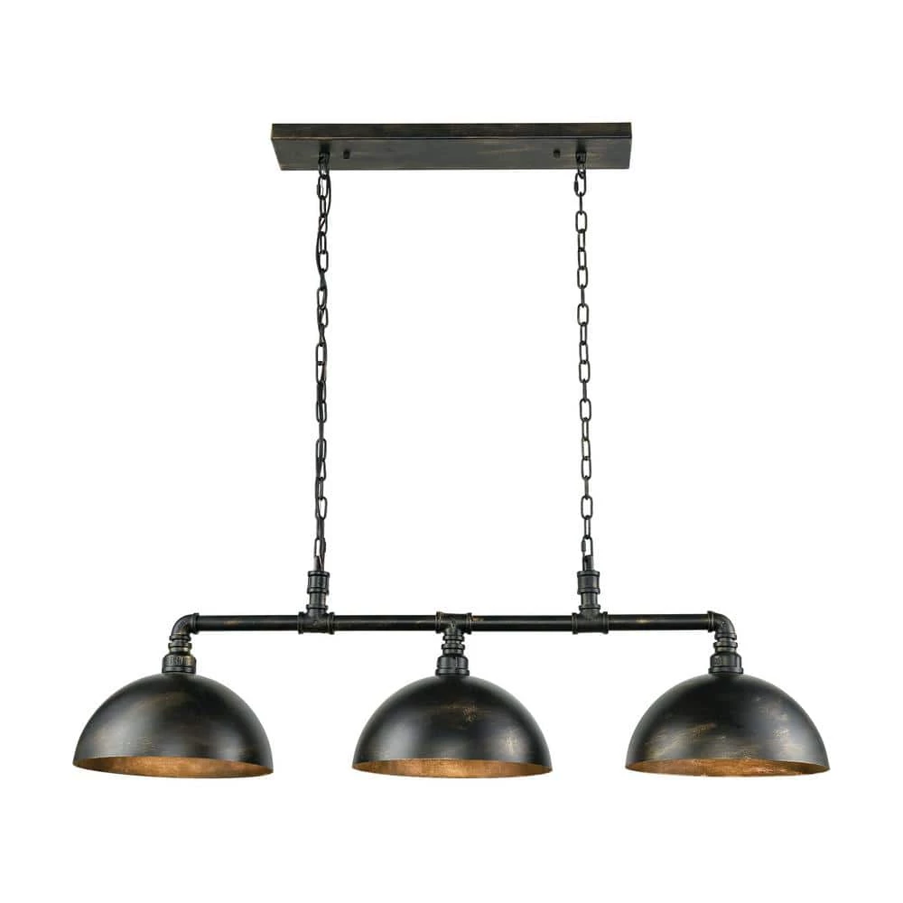 Mulvaney 3-Light Black with Brushed Gold Accents billiard light made with metal. This fixture is suitable as an island light or billiard light. All billiard/island lights are rated for indoor dry locations. Fixtures are shipped with installation hardware.