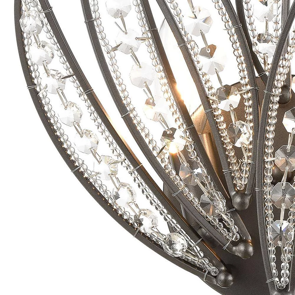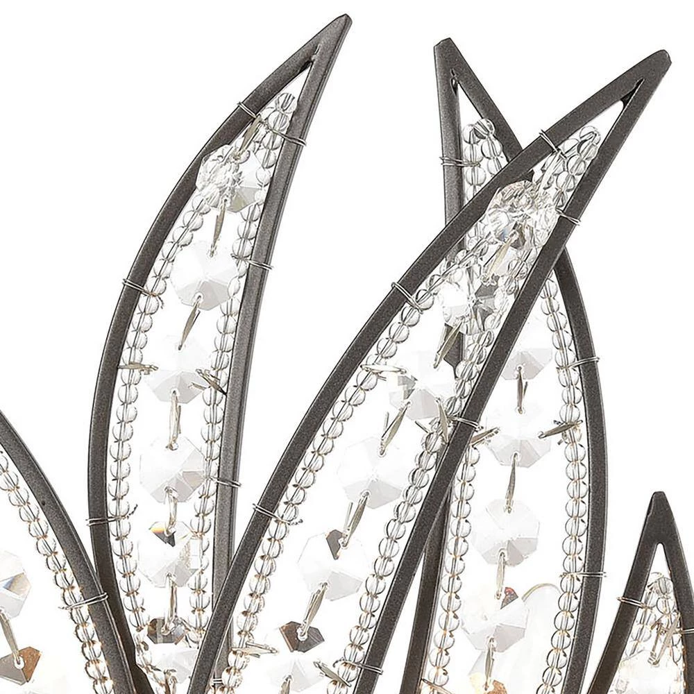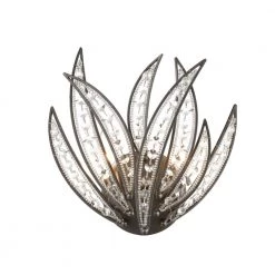 Inspired by the most recognized symbol of warmth and relaxation, the Naples sconce re-interprets the infamous palm into a sculpture-like presentation of dramatic metal fronds interlaced with glass beading and crystal. The Dark Graphite finish sharply defines the fronds’ edges and angles. This light is a great addition to any room. Adds a touch of style.