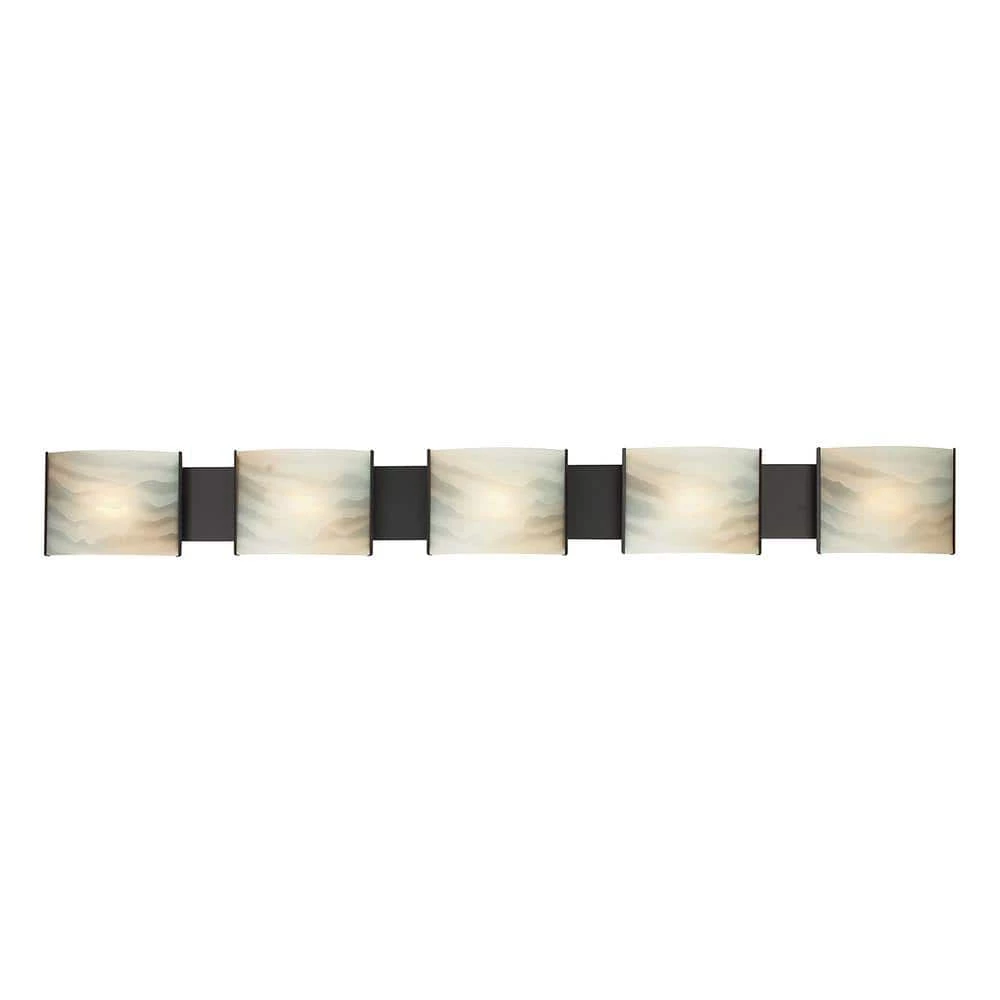 Pannelli unique and simple design is a timeless classic. Complemented by the natural beauty of chrome, stainless steel or oil-rubbed bronze. Pannelli imported glass is hand molded in white opal and honey or white alabaster. For indoor use only. ADA approved product. One of the few collections to offer a 52 wide 5-light vanity.
