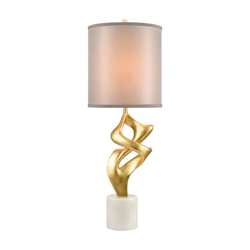 Add a lux touch to an interior with the Auberge table lamp. Its metal base has a rich, gold leaf finish and is embellished with clear, crystal links. Its rectangular hardback shade keeps the profile narrow, making it an excellent choice for lighting a side table or console.