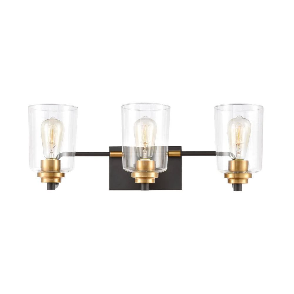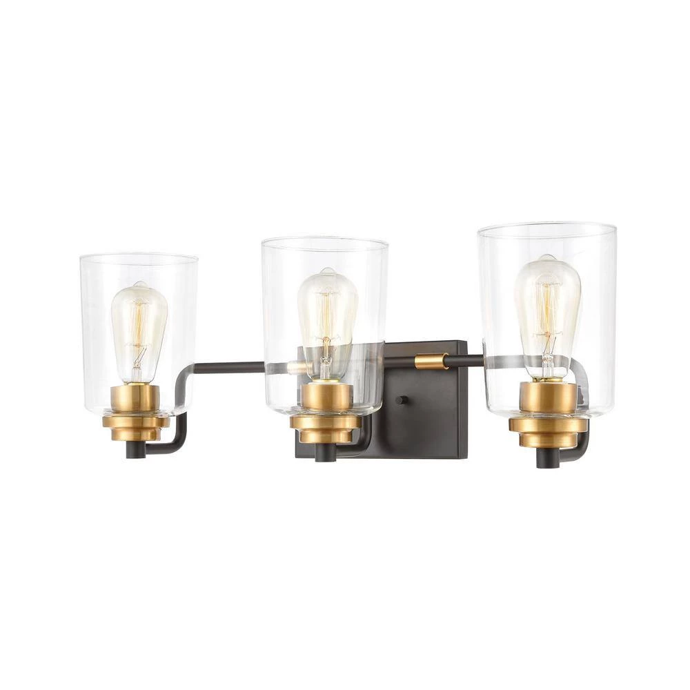 The Robins 3-Light Vanity Light features a trio of glass cylinder hurricanes and exposed bulbs. Brass bulb fittings and matte black backplate provide a modern, industrial iteration of a classic and versatile silhouette. A great addition to any room. Can be used with LED bulbs.