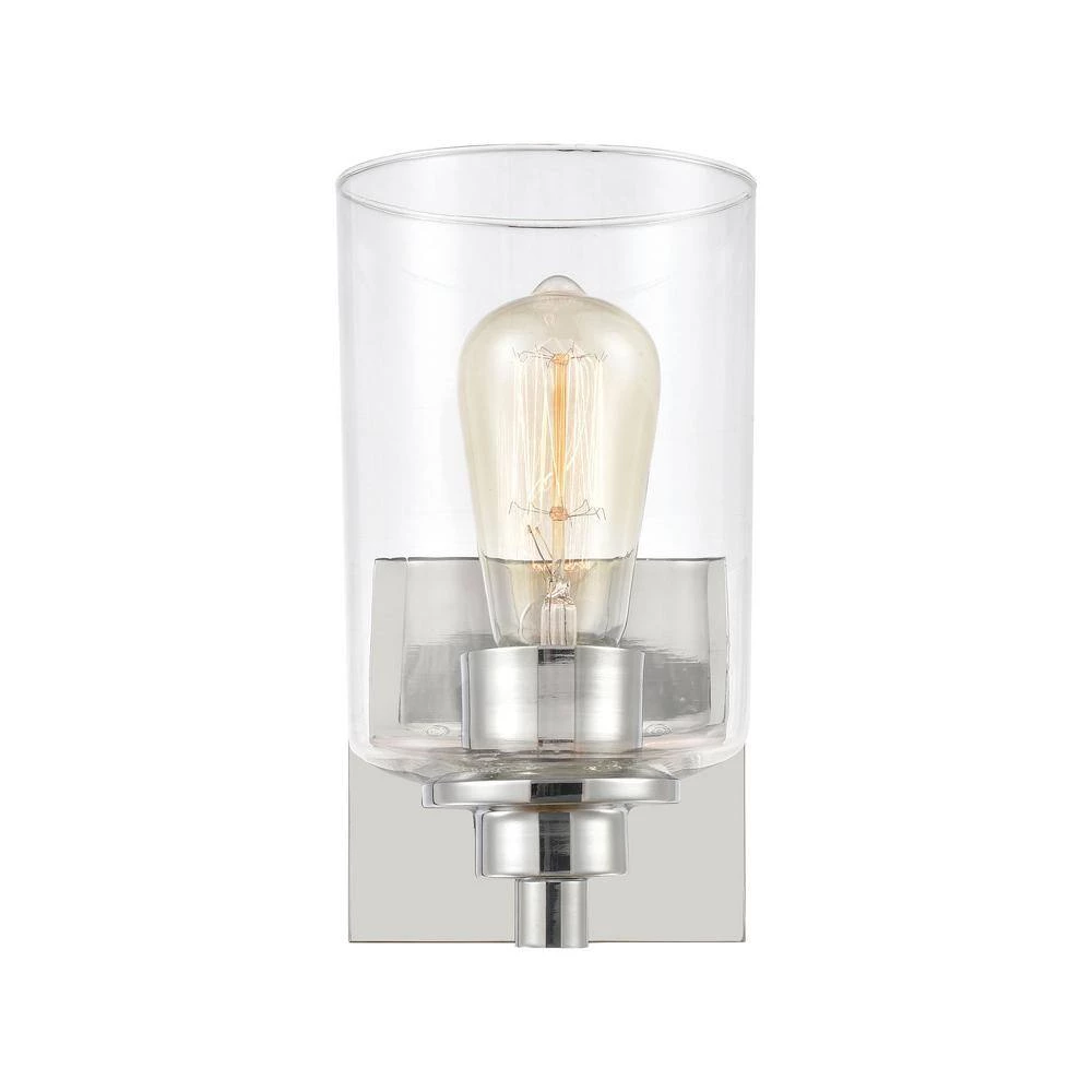 The Robins 1-Light Vanity Light features a single glass cylinder hurricane and exposed bulb. Polished chrome fittings and backplate provide a modern, elegant iteration of a classic industrial silhouette. A great addition to any room. Can be used with LED bulbs.