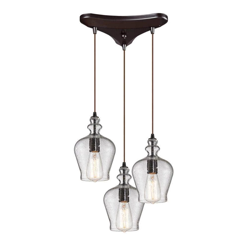 Industrial inventions of yesteryear are reclaimed to deliver the style demands of today. The classic filament bulb (optional) is showcased within a seeded blown glass shade. An Oiled Bronze finish with a cloth cord offers versatility for any decor.