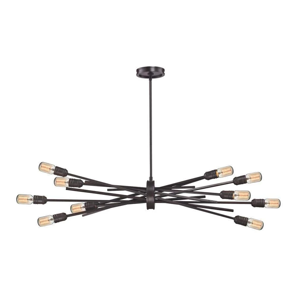 Xenia 10 Light Chandelier In Oil Rubbed Bronze. These fixtures showcase a unique linear design with unequal length arms that pass through the fixture’s central connection. The metal arms can be easily adjusted from a near parallel position to a loosely gathered look. An Oil Rubbed Bronze finish and optional filament bulbs complete this innovative series.